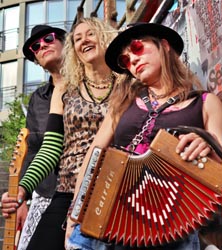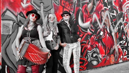 die Party zu rocken. Das verrückte Trio spielt sich mit Akkordeon,